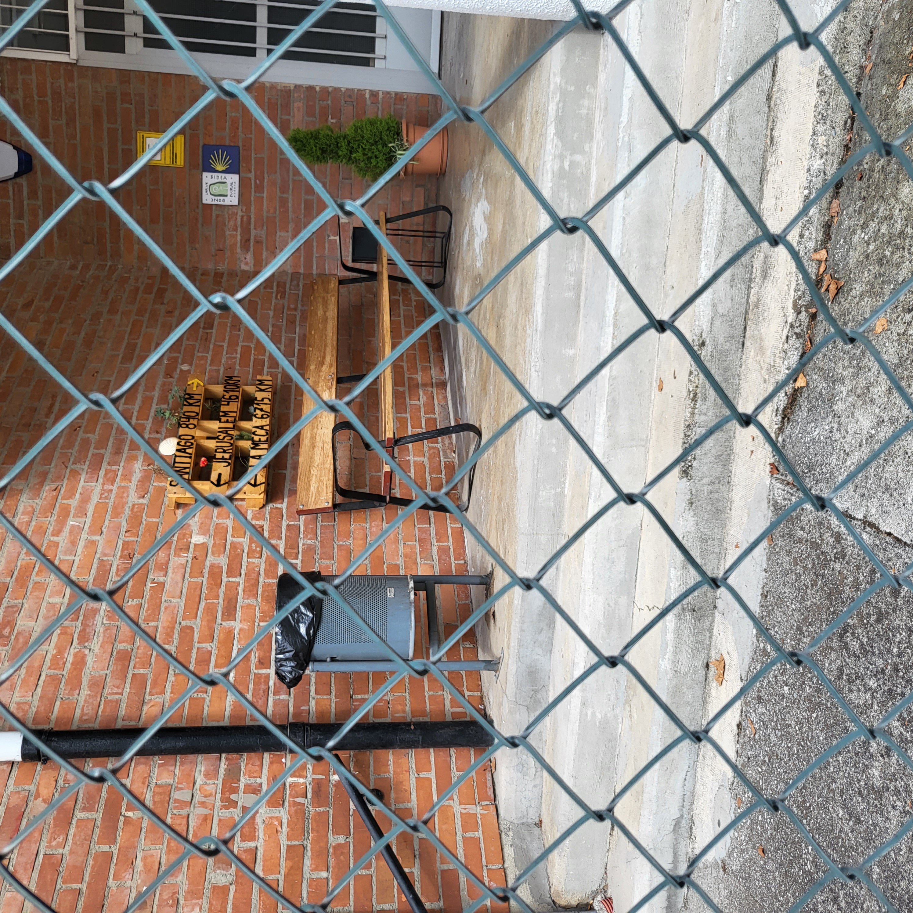 By chance, I meet a young man who definitely looks like a pilgram, or who is walking the Camino. He has been walking from his home in Belgium through France for the past months, and the next day he would begin his Camino del Norte! He was looking for an albergue (a hostel for pilgrims) and I thought I can get help there. The gate to the albergue is closed, but there is a lady inside the gate, 10 meters away, who motions that she couldn't speak, pointing to her throat. Nonetheless, she points to the right side of albergue as the direction of the Camino...