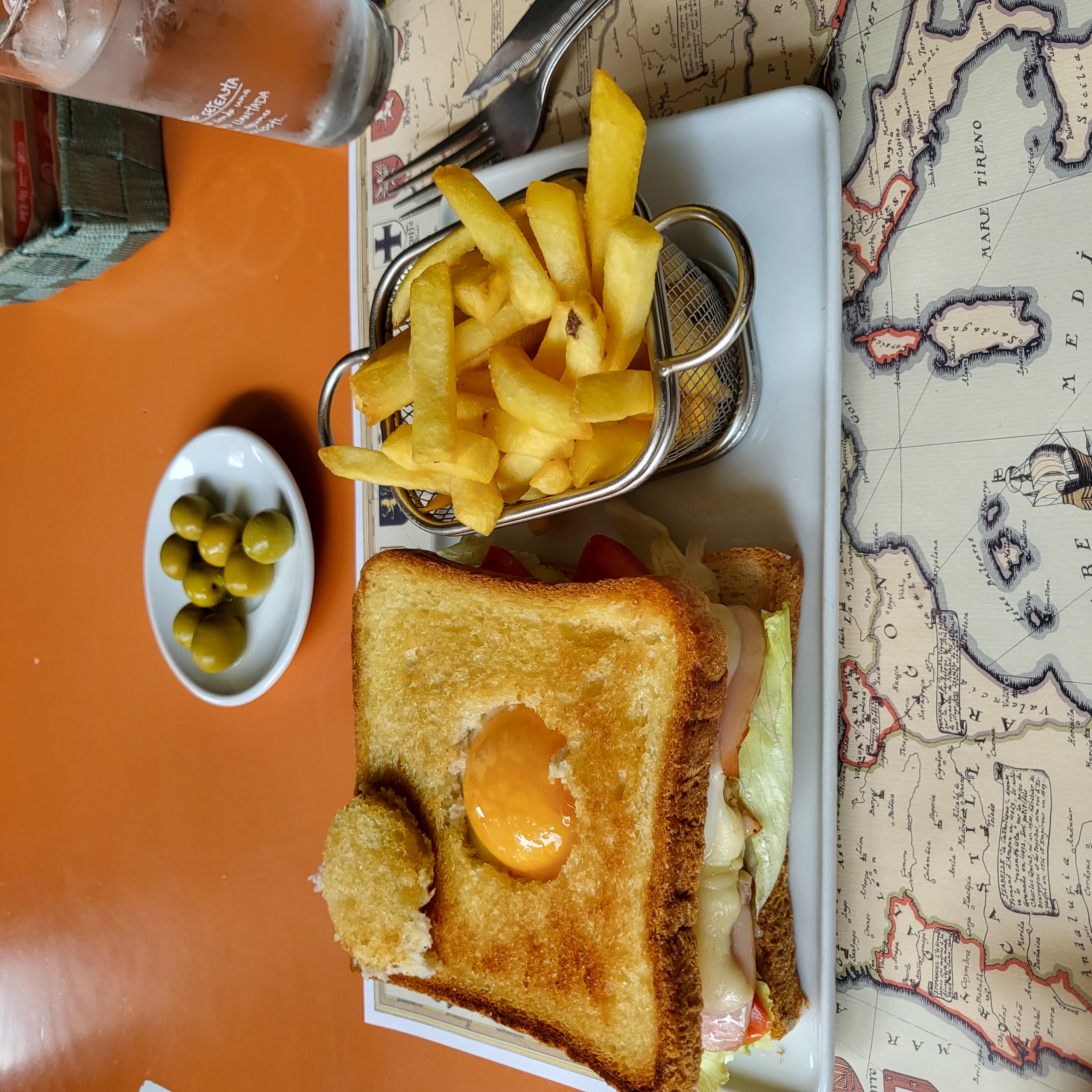 Saying good-bye to the Belgian, I started to walk alone. After walking for 30+ minutes, I realize that I didn't see any Camino sign, and that I have just been walking along the road toward San Sebastián. Well, it's past 1pm, and I am hungry.
