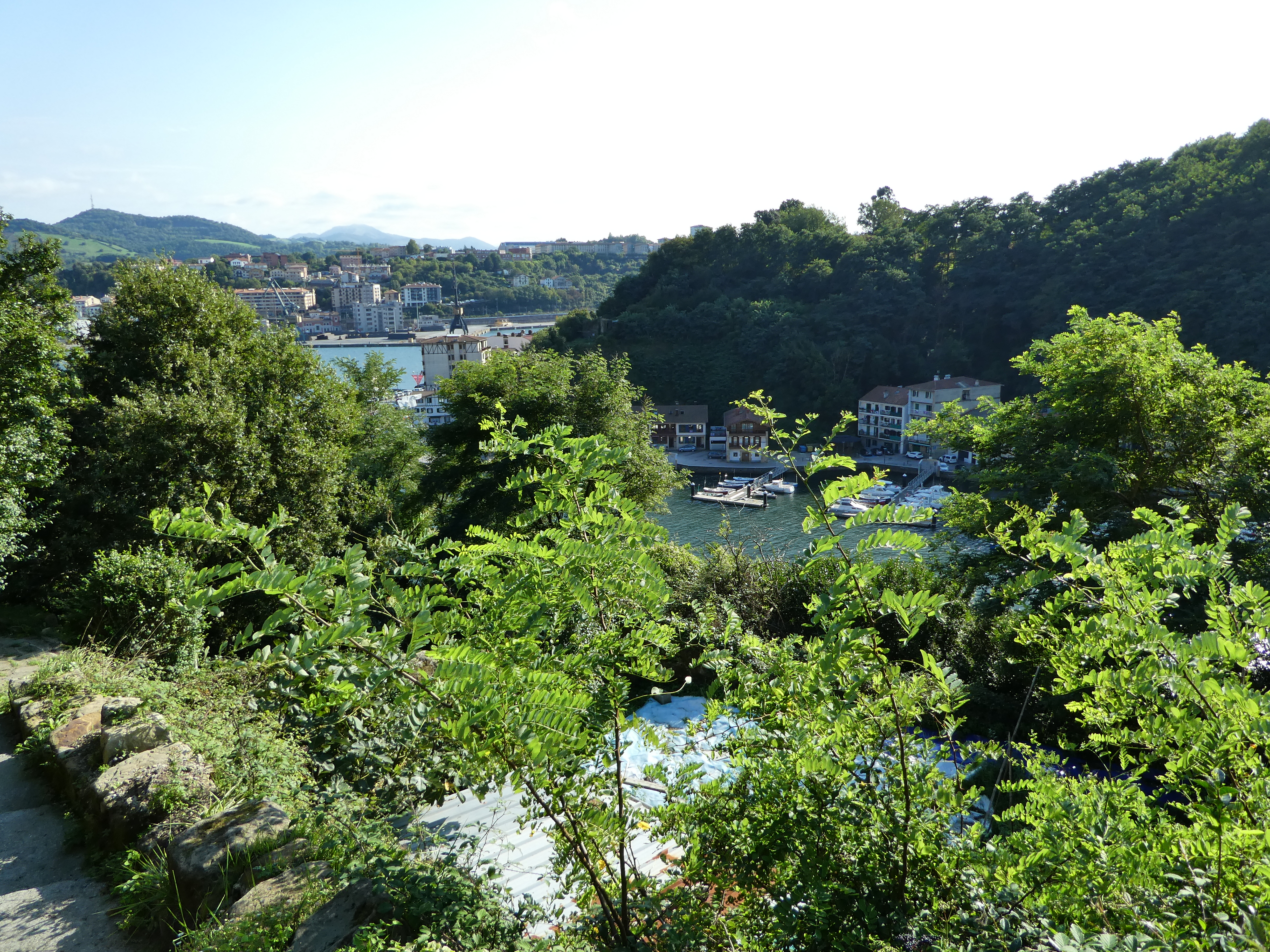Next 3.3 km is straight up, gaining over 220 m. It may not sound much, but my body is still in the San Diego time zone, not the Camino time zone, and I am carrying a full backpack in a very hot, muggy day. It's tough to go up, but finally, I am on the ridge, and I see Irún below.