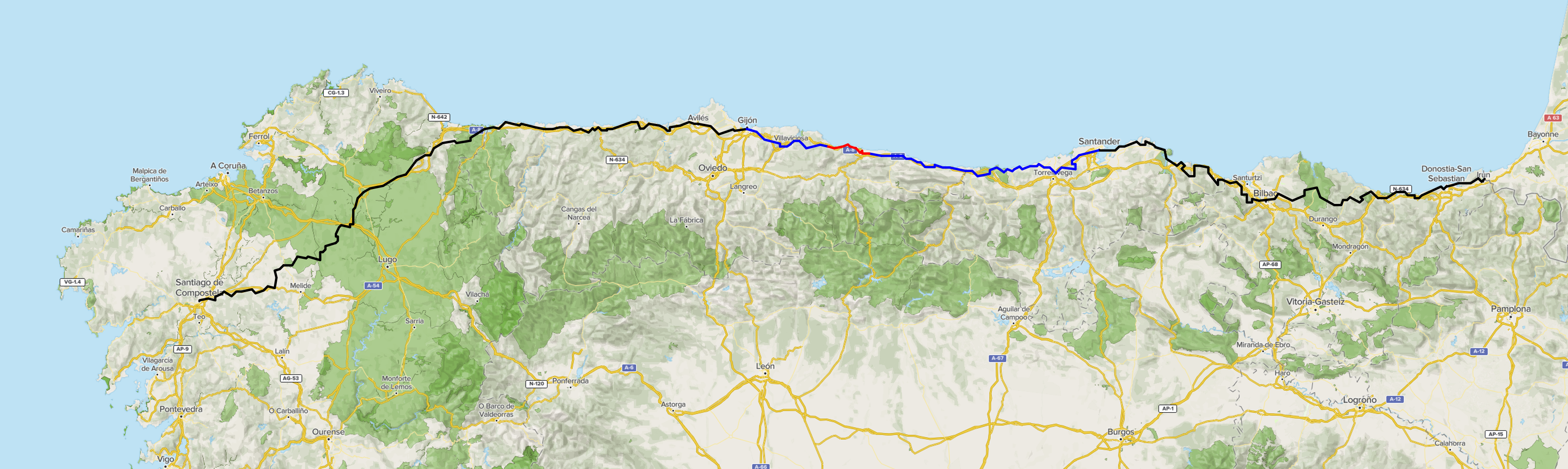 Camino del Norte distance: 476.10 km (295.83 mi)